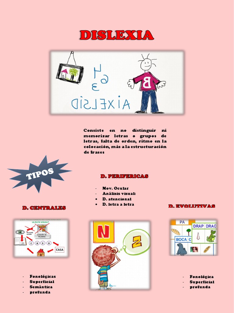 Para este tipo de dislexia la ruta que aparece más deteriorada es la visual, léxica o directa, por lo que se utiliza para leer la ruta fonológica. The information on this website is intended for general informational purposes only, and is not intended as a substitute for the medical advice of a health care professional. Different people are affected to different degrees. Dec 29, 2011 · font created to help dyslexic readers. La dislexia y las dificultades en la adquisición de la lectoescritura 424 disability in each classroom, hence the importance of knowing these even the concept of "dyslexia" into "dyslexic errors".
